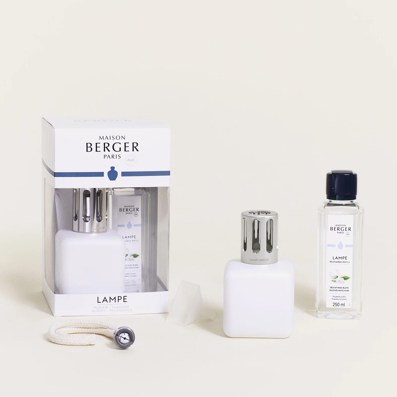 Maison Berger Paris garantiza la más alta calidad, difundiendo solo sustancias bien conocidas y controladas. La fragancia Délicat Musc Blanc ofrece una experiencia pura y refrescante con sus delicadas notas de petitgrain, azahar y almizcle blanco.