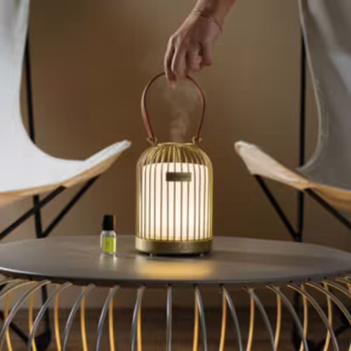 El Difusor de Bruma Esteban Lampion Edition con su apariencia de pajarera dorada y su elegancia incomparable, está a punto de revolucionar tus días y noches en casa.